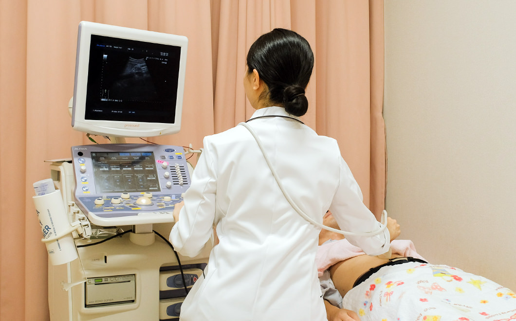 超音波とは人の耳には聞こえない周波数の音波のことを言います。機械から生体内に超音波を発信し、各臓器の反射波を受信し、モニターに映し出します。対象は腹部、心臓、乳腺、甲状腺、頚部血管、下肢静脈などを検査します。超音波検査に痛みはありません。超音波検査士の資格を持つ者も在籍しています。