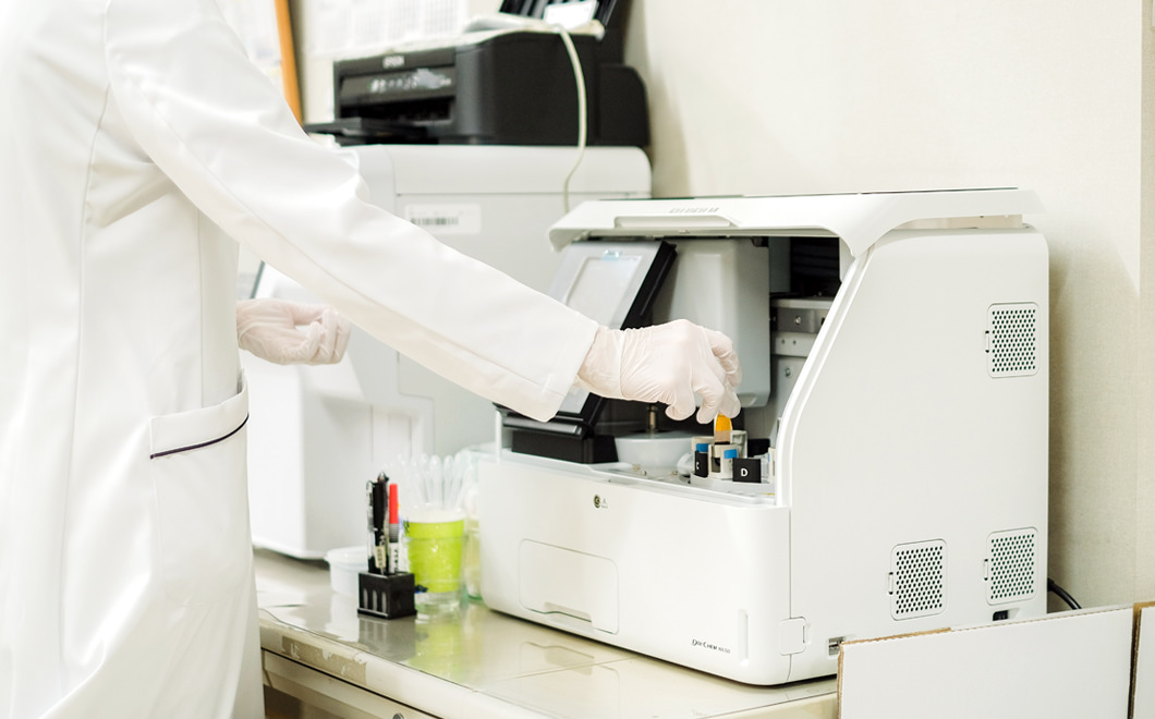 当院で行っている検査は、患者さんから採取した血液、尿などを調べる検体検査と心電図や超音波検査、肺機能など身体を直接検査する生理検査の2つに大きく分けられます。これらのデータは医師に提供され病気の診断や治療に役立っています。