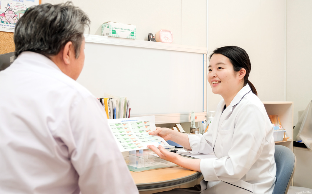 それぞれの生活に合わせて、患者さんと一緒に考えていく指導に努めています。その他食事全般についても、お気軽にご相談ください。