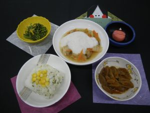 節分は、もともと立春・立夏・立秋・立冬の四季の分かれ目を意味する言葉でしたが、室町時代から立春の前日を節分と呼ぶようになりました。旧暦では立春が年の始まりと考えられており、節分はその前日、つまり一年の最後の日であること、また気候が冬から春に移り変わる時期でもあることから、特別な意味をもつと考えられていたようです。あきた病院でも節分御膳を行い鬼退治を行いました。