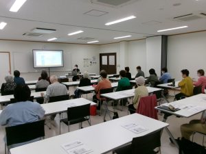 20名弱の参加者の皆様と一緒に、フレイルとはどういったことか?食事をする際に気をつける事などの講義と、ふくらはぎの太さで判断するサルコペニアチェックなどの実習を行いました。早口言葉を皆様と一緒に実施した際は出来た!出来ない!などにぎやかな笑い声に包まれていました。