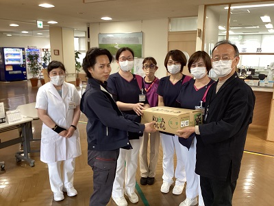 毎年「よい茄子の日 4月17日」にあわせて JA熊本市あきた茄子部会様より新鮮な「肥後のでこなす」をいただいています。今年も患者さんやデイサービス利用者さんやグループホーム入居者さんにおもいおもいのレシピで喜んでいただけました。