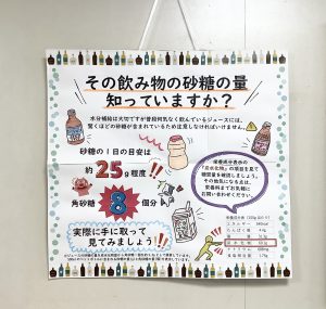 実際展示物をみられた方は、ペットボトルに含まれる砂糖の量にびっくりされていました。