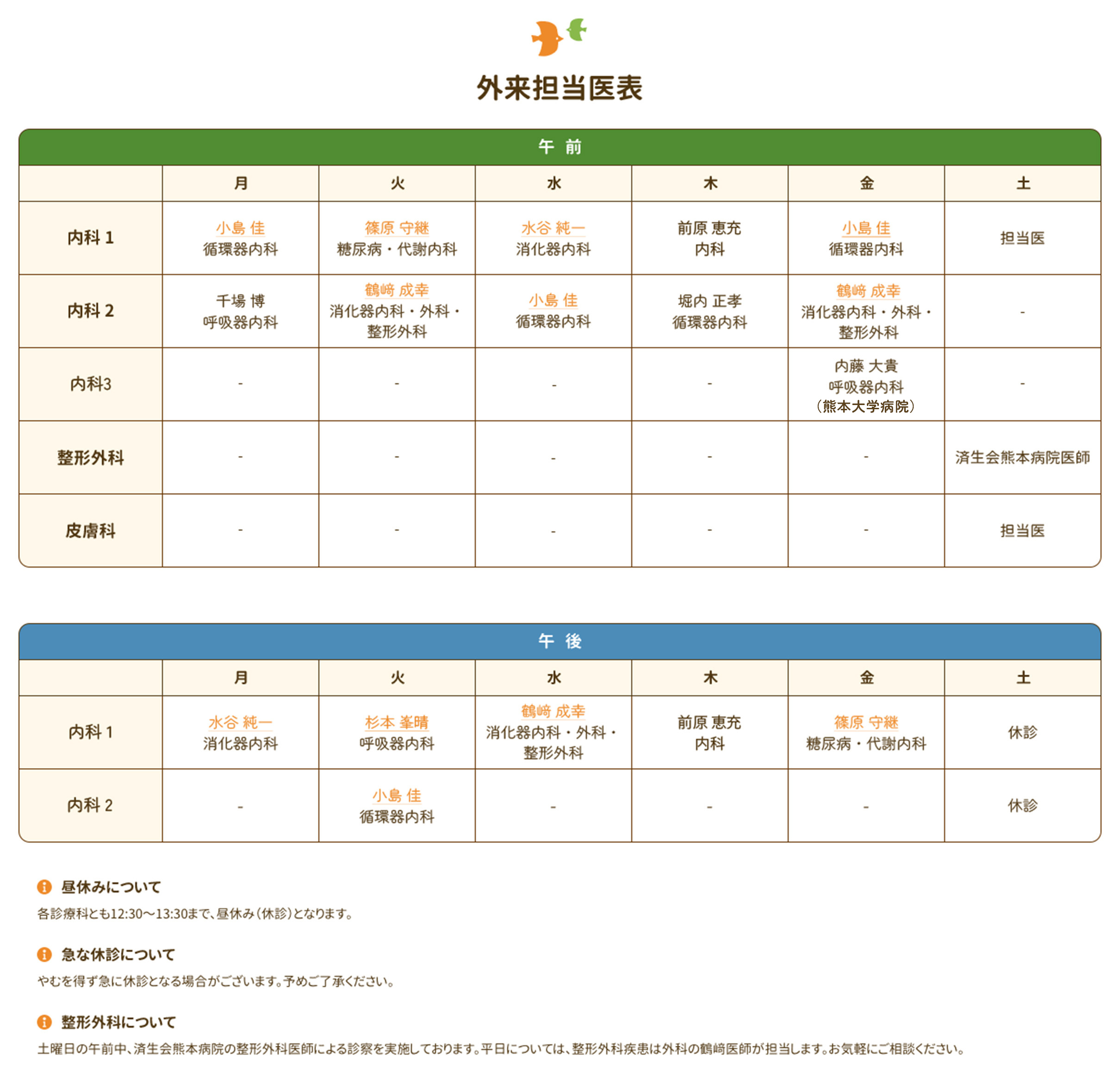 2025年4月1日から上記の通り、担当表が変更となりますのでお知らせいたします。