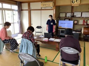 今回は『フレイル』とはなにか? フレイル予防のための食事・運動・お口のケアについての実技を交えたお話でした。質問もいただき和やかな雰囲気で終了しました。