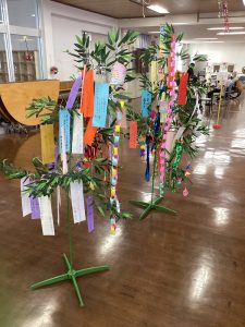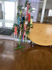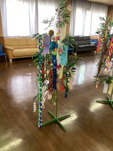 今年も利用者の皆様に短冊へ願い事を書いていただき、笹に飾りつけを行いました。