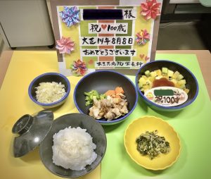 あきた病院では100歳のお誕生日を迎えられた方へ『100歳御膳』を提供しています。